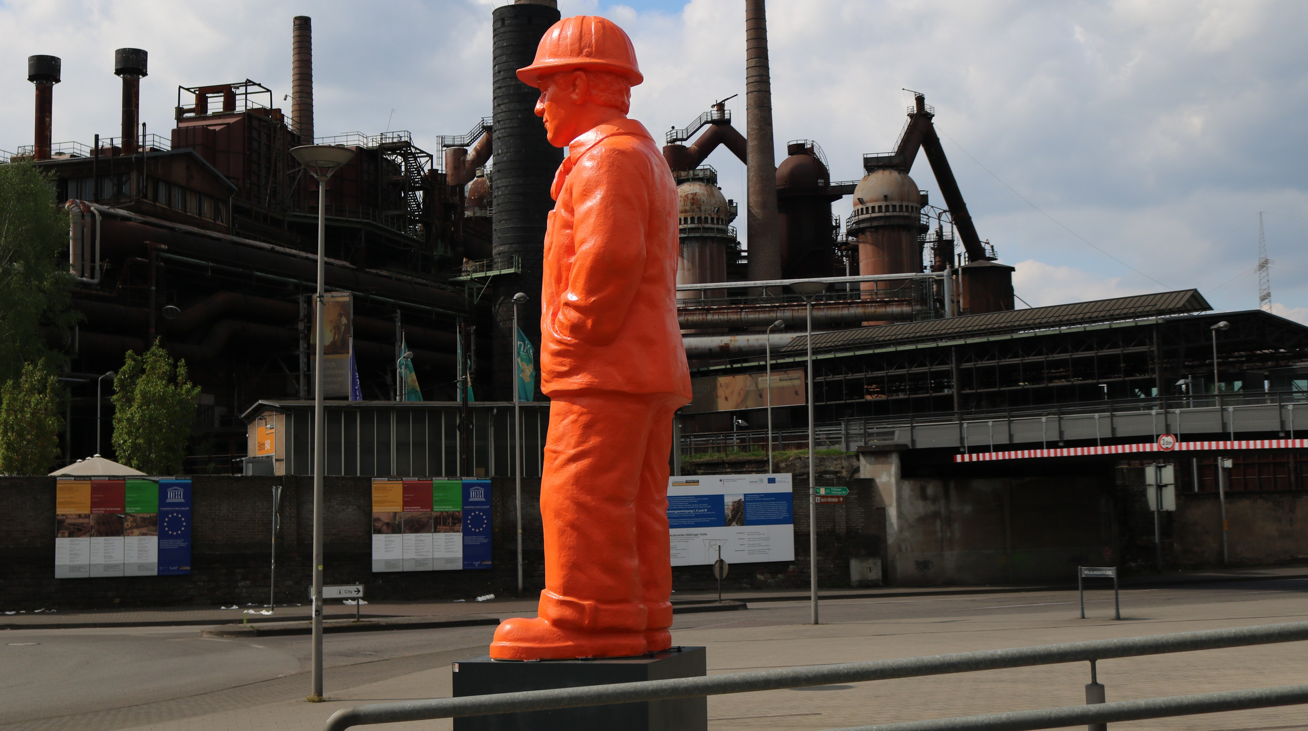 It is based on the former steelworkers with their helmets and work clothes. Placed on a black, approximately 1.20-meter-high pedestal in monochrome orange, it refers to the museum and the artist's serial figures of the same name, approximately one meter high, installed there. "I want to send a symbol to the people who worked so hard there in the past," Hörl emphasized, according to the press agency dpa. The history of the Völklingen Ironworks is a good example of human drive and structural change, a topic that's still relevant today and makes you think: To what extent do progress and change influence both social structures and individual realities of life? What are the consequences when automated systems and digital technologies replace the majority of human labor? Although Hörl does not create classical monuments with his serial sculptures, it was particularly important to him to use this large-scale sculpture to honor the achievements of workers for society.