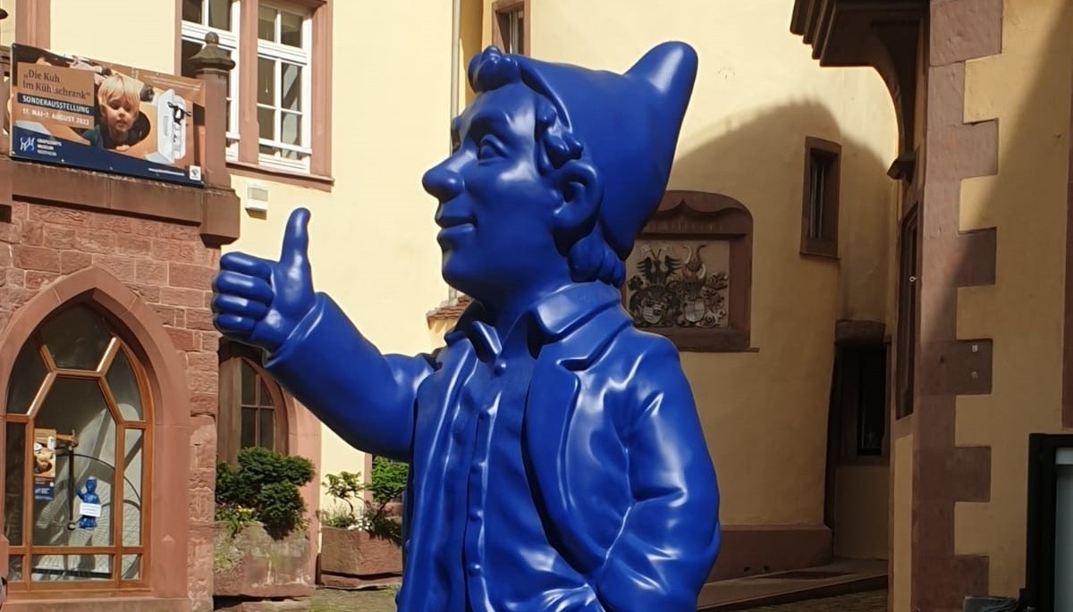 One example is the "Optimist." On the initiative and invitation of the city of Wertheim, Christian Schlager, castle and city center manager, and in cooperation with Bernd Maack, chairman of Stadtmarketing Wertheim e. V., conceptual artist Ottmar Hörl developed the participatory art project "FLASHMOB" in 2020 with a large number of "optimistic" garden gnomes in the historic old town of Wertheim in order to spread more optimism with a wink in times of the Corona pandemic and to encourage people to become part of the project. Two years later, Wertheim's city marketing department commissioned him to create a three-meter-high large-scale sculpture in monochrome blue for the square in front of the County Museum. In the meantime, "optimists" from Wertheim are conquering more public and private spaces, humorously reflecting the astonishing power of positive thoughts.