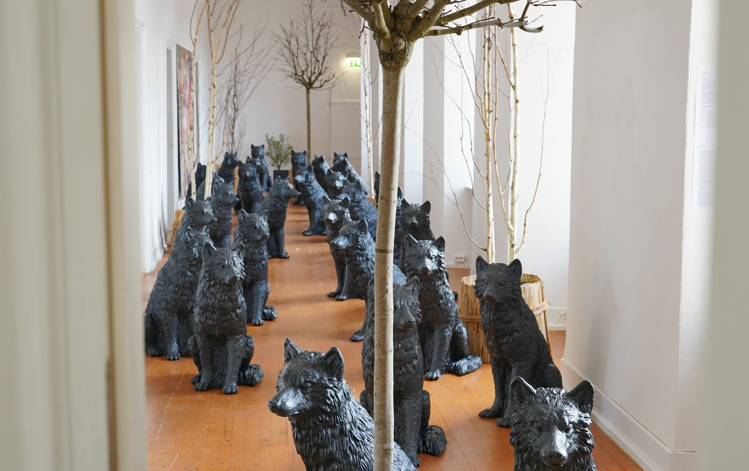 He also takes up the idea by showing a pack of wolf sculptures which also refers to the wild, original natural state characteristic of the "Glasshouse". By tolerating wolves, man assumed he could mend or "repair" nature to a certain extent, and restore balance in nature. However, ultimately, nature is uncontrollable. On a small scale, this is also reflected in the many conflicts that follow from the migration of wolves. When it comes to repairs, man cannot keep track of all of nature's "regulating screws" since nature follows a different reality than that which man imagines.