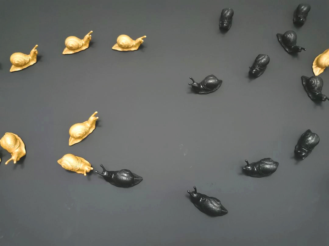 All of a sudden, in this unfathomable cycle, small snails in various colours appear. In contrast to Homo sapiens, they are evolutionary survivors. Created by Ottmar Hörl, the snails also display a serial structural element. The artist conceives of this structural component as a fundamental ingredient of modern society.